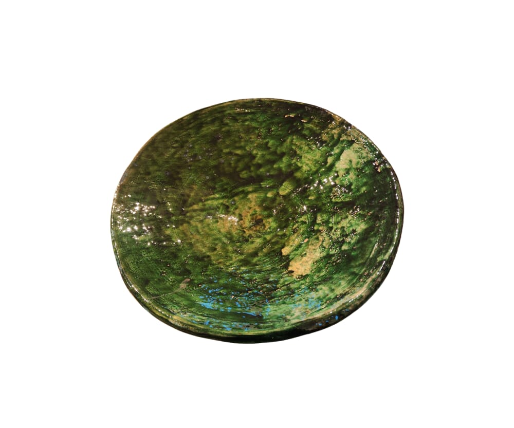 Scopri l'Alzata Centrotavola Realizzata Secondo la Tradizione Marocchina, un magnifico pezzo d'arredamento in terracotta con finitura smaltata verde intenso. Questo oggetto unico unisce maestria artigianale e design elegante, portando un tocco di carattere e autenticità in ogni ambiente.