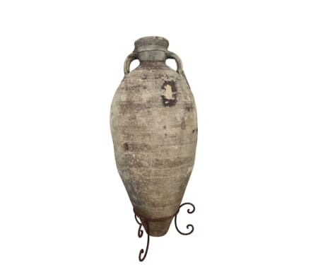 Scopri l’Anfora Antica in Terracotta con Piedistallo in Ferro