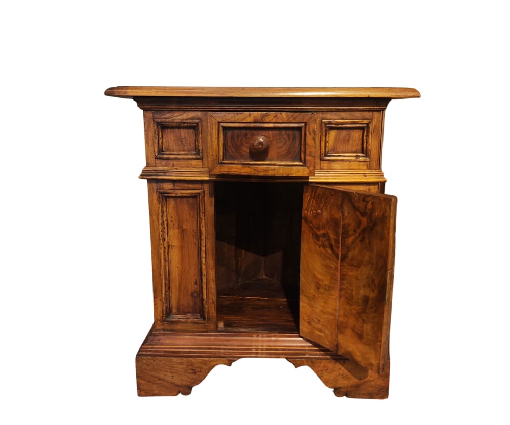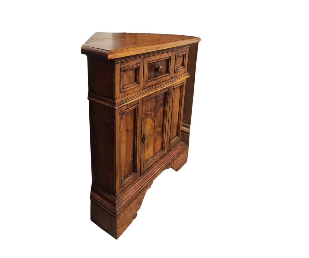 Questa angoliera piccola, realizzata in pregiata radica di noce, è un vero esempio di artigianalità.
