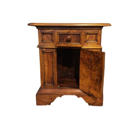 Materiali Pregiati: Realizzata in radica di noce, questa angoliera combina bellezza e robustezza, mostrando le caratteristiche naturali del legno e valorizzando l’artigianalità del pezzo.
