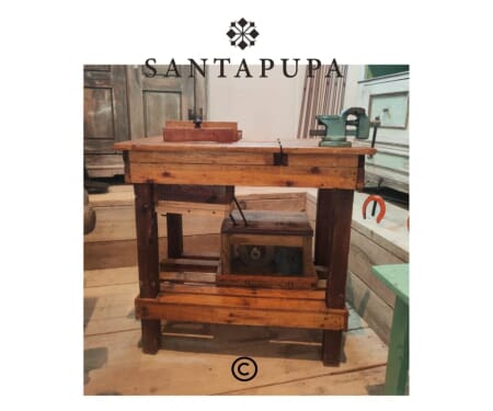 Costruito interamente in legno di abete e risalente ai primi del ’900, questo banco da lavoro rappresenta una rara combinazione di robustezza e autenticità. Gli accessori originali ne confermano la vocazione professionale, rendendolo ideale come arredo industriale o oggetto da collezione.