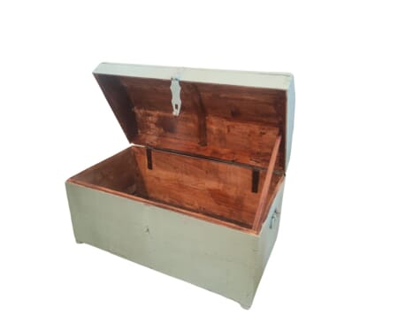 Immaginalo sotto una finestra, accanto a una poltrona o ai piedi del letto: un tocco romantico e ordinato che aggiunge carattere e armonia. Che tu voglia riporvi plaid, libri o ricordi, questo baule celeste saprà custodirli con stile.