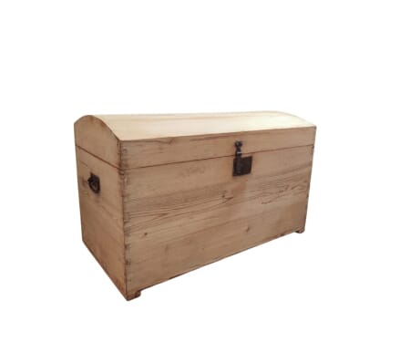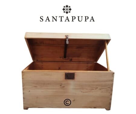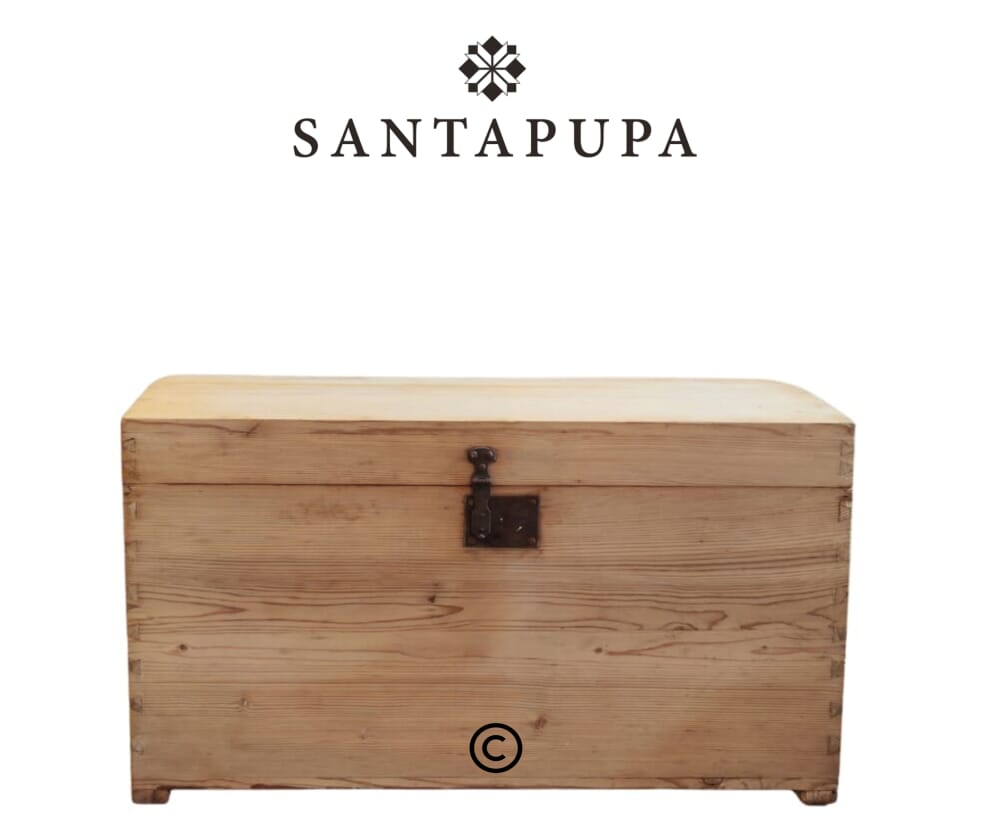 Questo baule capiente, realizzato in legno di abete con finitura naturale, è un complemento d’arredo dallo stile artigianale. Le venature del legno lasciate a vista valorizzano la semplicità e il calore del materiale, rendendolo ideale per ambienti dallo stile rustico, country o minimal naturale.