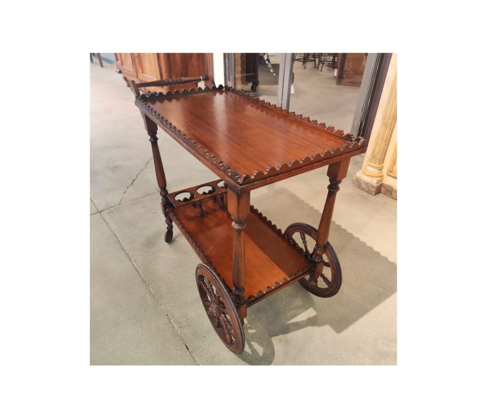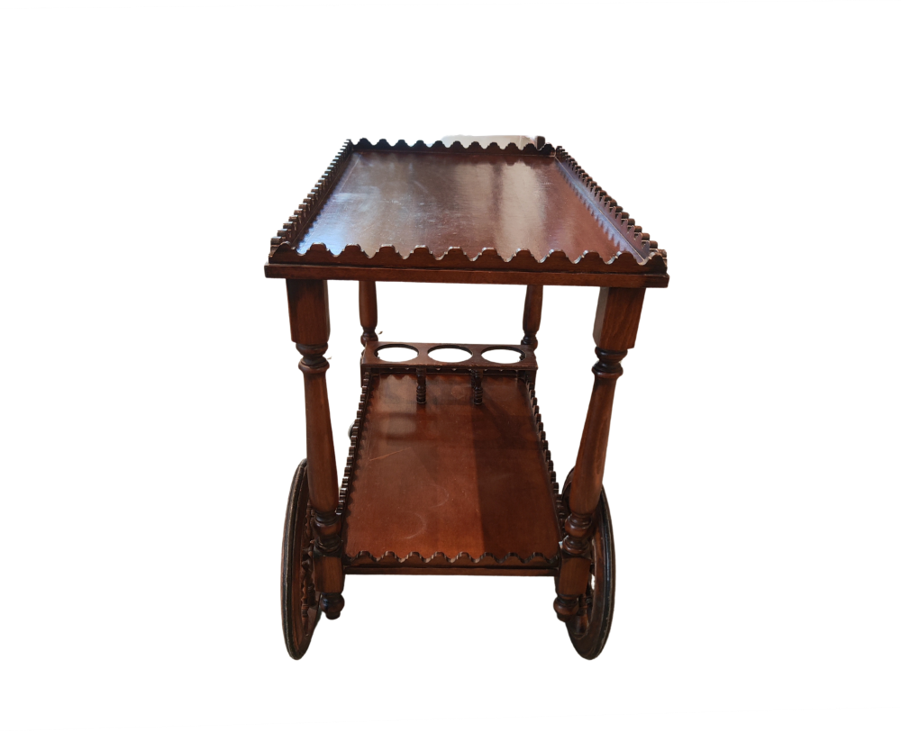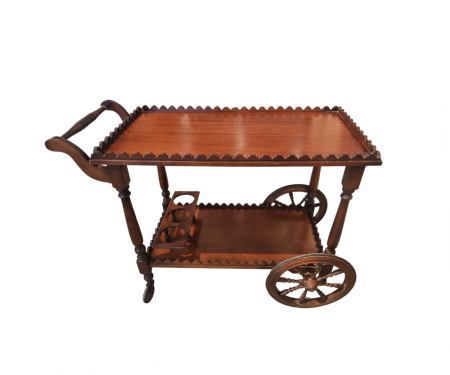 Design Elegante: Le gambe arricchite da modanature e il design raffinato fanno di questo carrello non solo un oggetto funzionale, ma anche un vero e proprio complemento d’arredo.