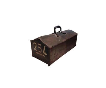 Posiziona questa cassetta in un angolo del tuo salotto o sulla scrivania, e osserva come cattura l’attenzione, portando un elemento di stile industriale e un richiamo al passato. Un vero pezzo da collezione o un'aggiunta affascinante al tuo arredamento.
