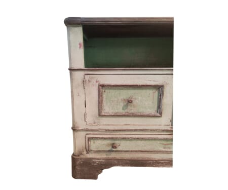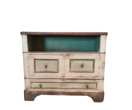 Tecnica Tempera Antica: Questa tecnica utilizzata per dipingere il comò conferisce un aspetto anticato davvero unico, i colori tenui e delicati, si abbinano facilmente in ogni ambiente.
