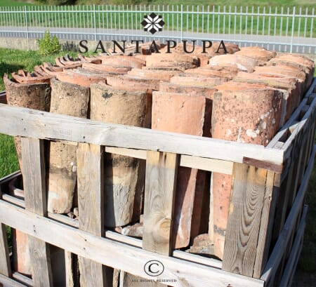 Coppi antichi di recupero fatti a mano, attentamente selezionati e provenienti da demolizioni storiche italiane, che presentano quindi tutte le caratteristiche di un prodotto unico ed antico, eterogeneo nella forma e nel colore. Trattandosi di materiale di recupero, le misure dei formati sono da considerarsi orientative e potrebbero variare da un manufatto all'altro.