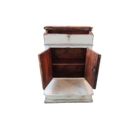 Design pratico: L'inginocchiatoio è dotato di 2 ante con ripiano interno, oltre a un piano superiore apribile, che lo rende particolarmente versatile per riporre oggetti o accessori con praticità.