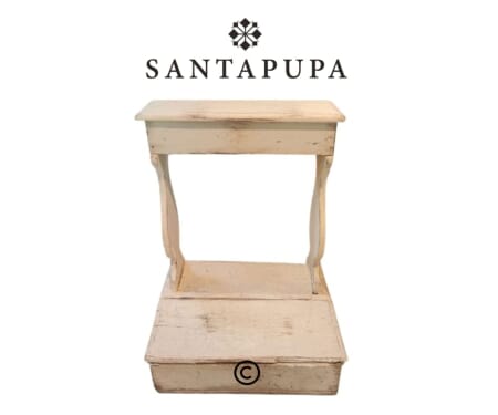 Restauro in Tempera Antica: L'inginocchiatoio è stato restaurato con una tempera antica, conferendo al legno un aspetto raffinato e una patina che racconta la storia e la tradizione del passato.