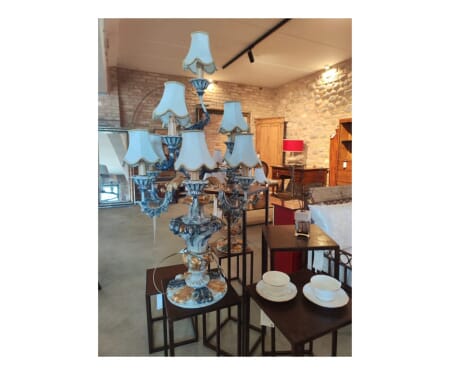 Una sala dal gusto antico, una camera ricca di dettagli d’epoca, o un ingresso che accoglie con calore: questa lampada è la protagonista silenziosa che illumina con classe. I paralumi diffondono una luce morbida, mentre la base scolpita racconta storie di eleganza e tradizione.