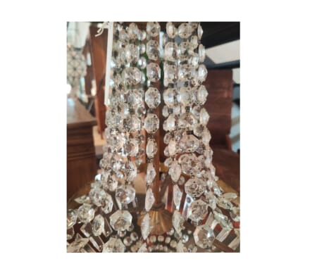 Un lampadario che incanta al primo sguardo.,Iinteramente rivestito da una fitta trama di cristalli scintillanti, dona luce e personalità a qualsiasi ambiente. Ogni cristallo cattura la luce e la rifrange in mille riflessi, creando un effetto visivo mozzafiato, ma sempre misurato, perfetto per chi ama il lusso discreto.