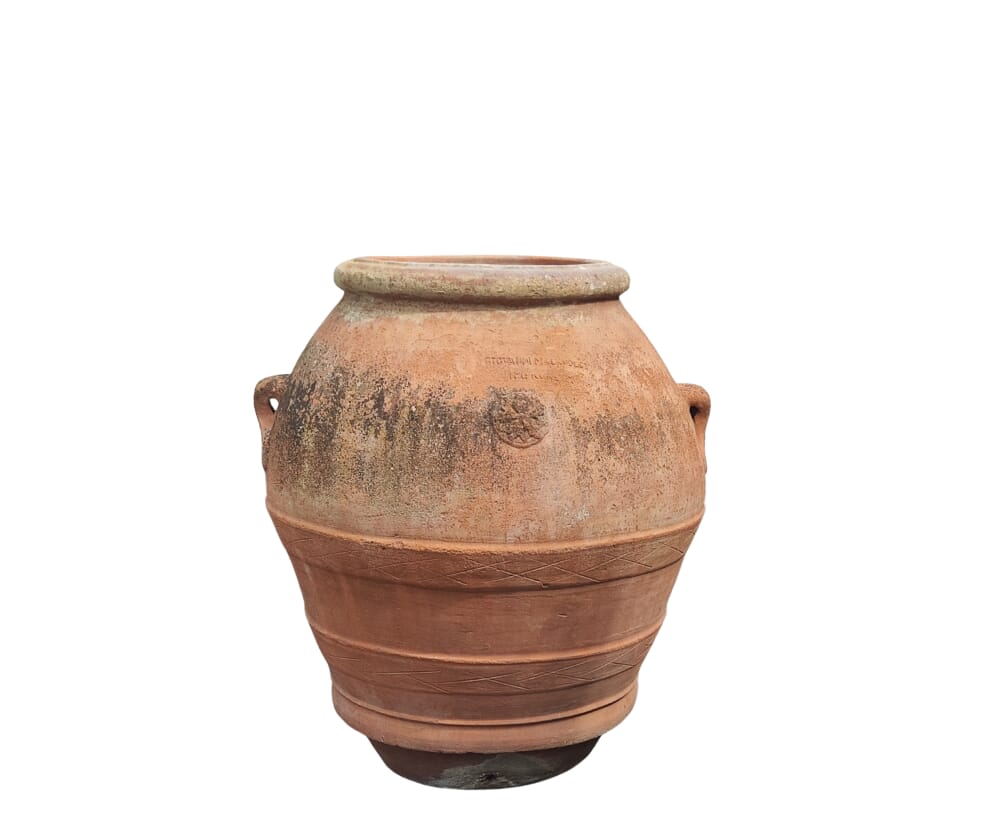 Questo orcio in terracotta toscana, arricchito da eleganti rilievi e due piccoli manici laterali, è un pezzo unico capace di donare un tocco di tradizione e fascino senza tempo a qualsiasi ambiente, un elemento d'arredo perfetto per chi cerca un'estetica vissuta e raffinata.