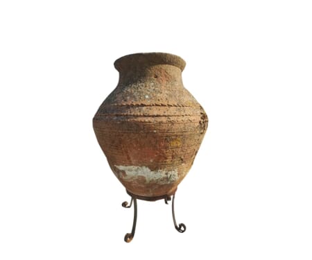 Questo imponente orcio in terracotta decorata, realizzato nella zona del Salento alla fine del 1800, è un vero pezzo unico. Che racconta una lunga storia di artigianato e tradizione mediterranea.