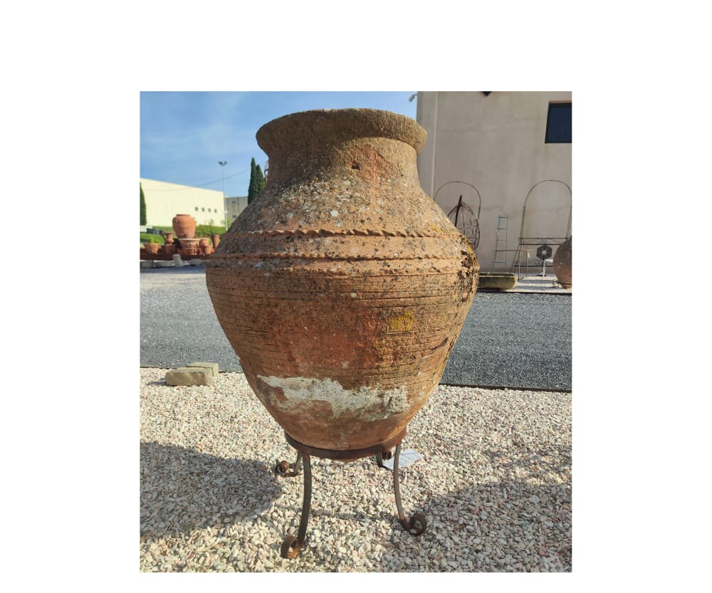 Visualizza quest’orcio al centro di un vialetto alberato, ai piedi di un ulivo secolare o affiancato da piante mediterranee. Il suo colore caldo, scolorito dal tempo, si fonde con la terra e la pietra, creando un insieme armonioso che trasmette pace, radici e bellezza autentica.
