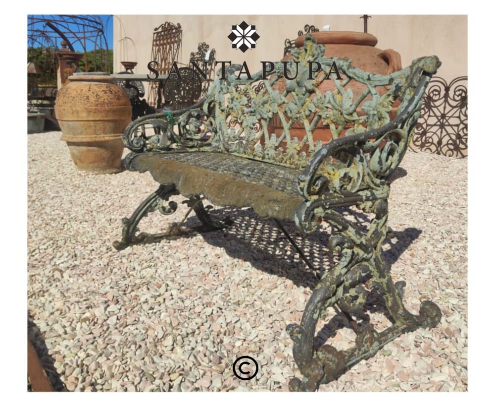 Materiale di Pregio: Realizzata interamente in ghisa, materiale noto per la sua solidità e durata, questa panchina unisce resistenza e stile con dettagli ornamentali che richiamano l’eleganza dei mobili d’altri tempi.