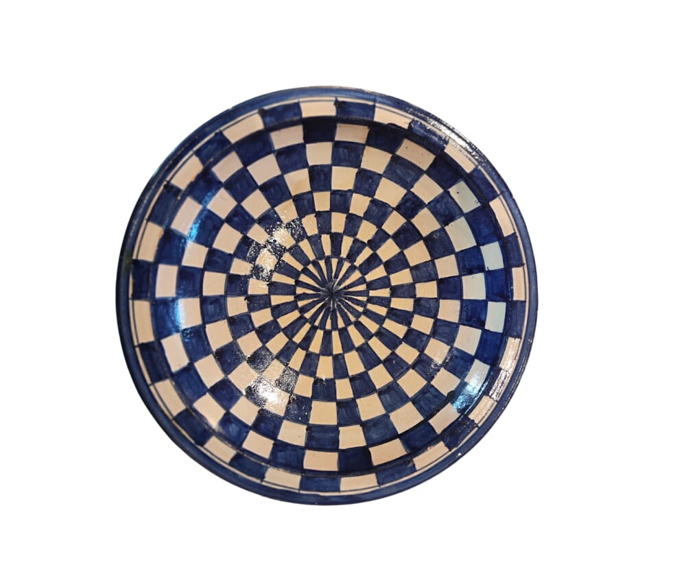 Aggiungi un tocco di eleganza e tradizione marocchina alla tua casa con questo piatto, perfetto per essere appeso come elemento d'arte alla parete o utilizzato come piatto da portata. Ogni piatto è realizzato a mano da esperti artigiani, che impiegano tecniche tradizionali di ceramica, e dipinto con motivi che evocano la vibrante e ricca cultura del Marocco.