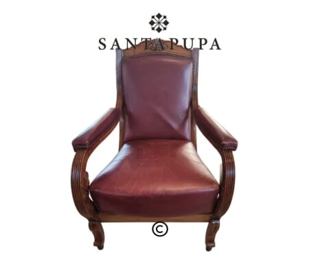 Eleganza Artigianale: Il legno di noce, lavorato con intagli e forme morbide, impreziosisce la struttura della poltrona con un gusto raffinato e senza tempo. La pelle, dal colore intenso e dalla naturale patina, aggiunge valore estetico e comfort, rendendo ogni dettaglio ancora più autentico.