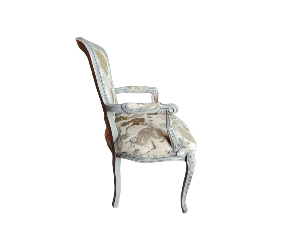 Restauro e Verniciatura Cialk: La poltroncina è stata restaurata con cura e riverniciata con vernici Cialk, che conferiscono un aspetto fresco e moderno, mantenendo al contempo il suo carattere autentico.