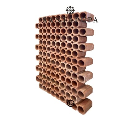 Questi elementi in terracotta sono progettati per essere facilmente affiancati e sovrapposti, permettendo di creare pareti portabottiglie personalizzate. Una soluzione pratica e versatile per organizzare lo spazio in modo ordinato ed elegante.