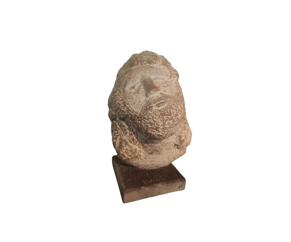Visualizza questa scultura che prende vita nella tua casa, con il suo volto maschile che trasmette emozione e profondità, aggiungendo un tocco di arte e cultura al tuo spazio.