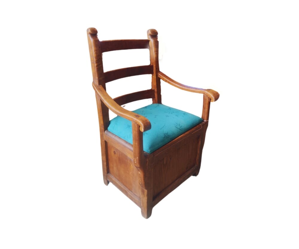 Sedia Comoda Toilette in Noce: un pezzo d'arredo che unisce funzionalità storica, comfort ed eleganza d'epoca.