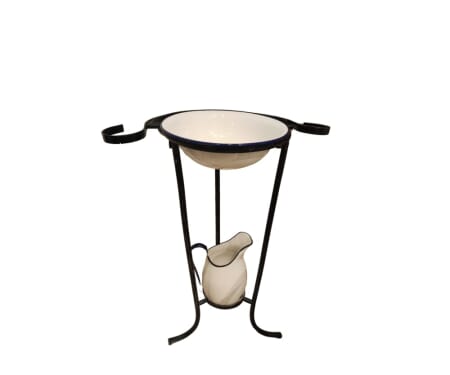 Un autentico capolavoro che sprigiona l’eleganza di un’epoca passata, questo Set Toilette Antica con catino e brocca è il perfetto complemento d'arredo per chi desidera portare un tocco di raffinatezza e classe nelle proprie stanze. Realizzato con una pregiata struttura in ferro battuto, questo set evoca la bellezza senza tempo delle toilette d’altri tempi, trasformando ogni ambiente in un angolo di eleganza storica.