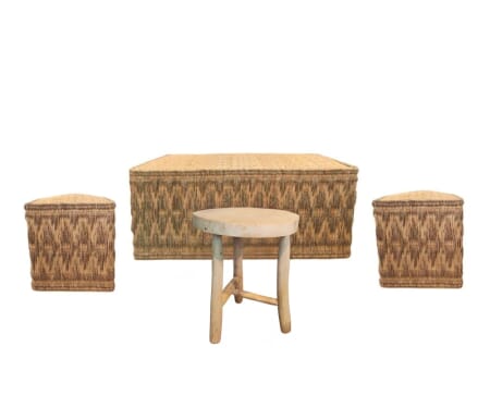 Scegliere questo set significa accogliere in casa un pezzo di cultura e artigianato autentico. È la scelta perfetta per chi desidera arredare con stile, ma anche con significato. Ogni intreccio, ogni dettaglio racconta una storia fatta di mani esperte e materiali naturali. Il design compatto lo rende estremamente versatile: può trovare posto in un angolo lettura, sotto un portico, in un soggiorno, sempre con la stessa capacità di creare un’atmosfera calda, rilassata e suggestiva. È più di un semplice arredo: è un invito a rallentare, a vivere gli spazi con calma e bellezza.