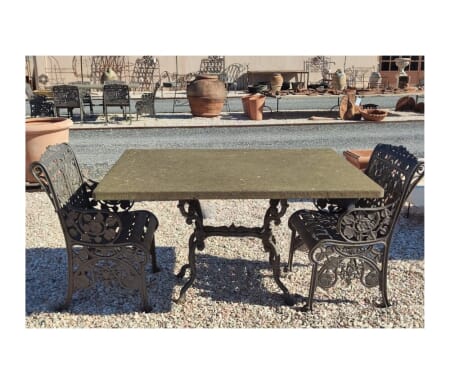 Stile Vintage e Raffinato: Il design della base in ghisa, con dettagli ornamentali, si abbina perfettamente al piano in pietra per creare un’atmosfera d’altri tempi, capace di valorizzare qualsiasi giardino, terrazza o patio.