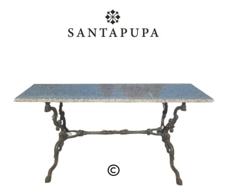 Questo tavolo è ideale per chi cerca un arredo esterno elegante e resistente, materiali di qualità come marmo e ferro, un punto d’incontro perfetto per pranzi all’aperto e momenti conviviali