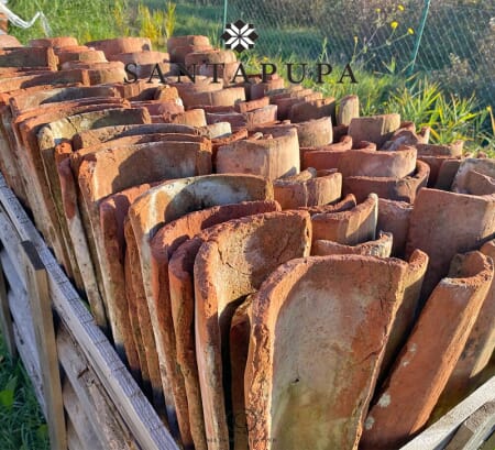 Coppi e Tegole antichi di recupero fatti a mano, attentamente selezionati e provenienti da demolizioni storiche italiane, che presentano quindi tutte le caratteristiche di un prodotto unico ed antico, eterogeneo nella forma e nel colore. Trattandosi di materiale di recupero, le misure dei formati sono da considerarsi orientative e potrebbero variare da un manufatto all'altro.