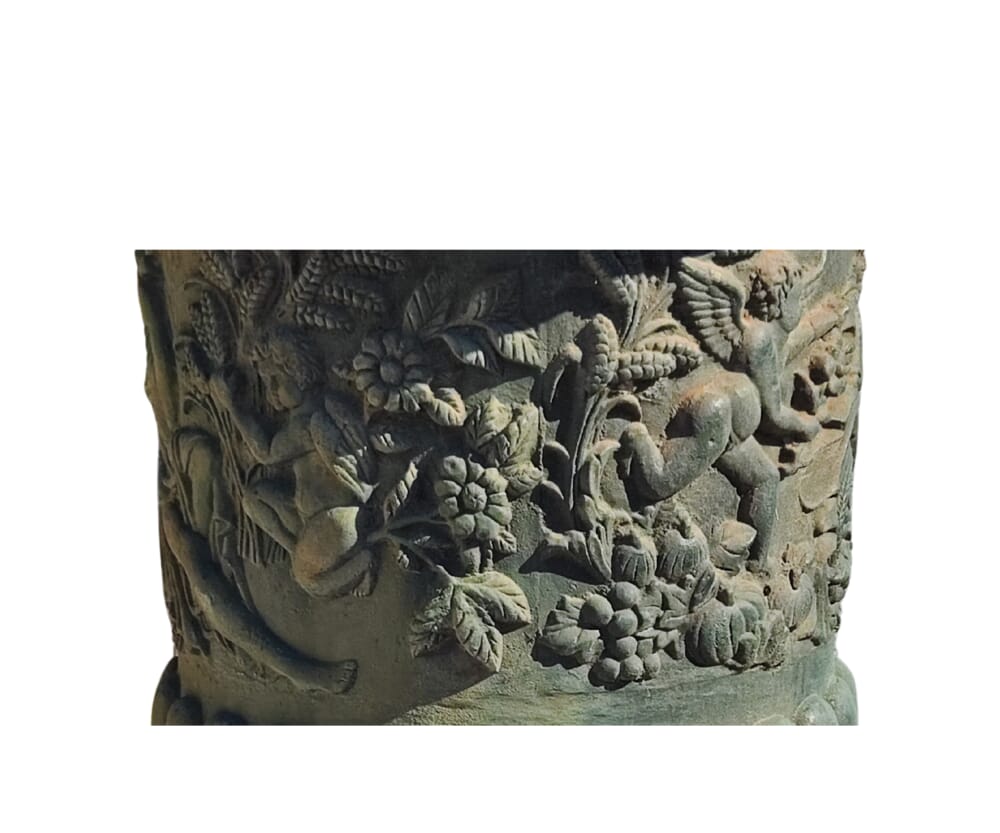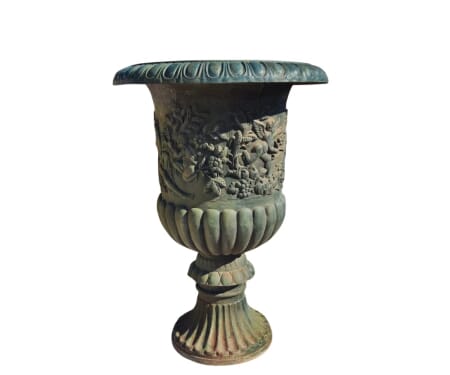 Imponente e ricco di fascino, questo vaso in ghisa è molto più di un semplice elemento decorativo: è una vera e propria dichiarazione di stile. Le sue dimensioni generose e le decorazioni in rilievo, curate con attenzione artigianale, lo rendono il protagonista indiscusso di qualsiasi spazio esterno.