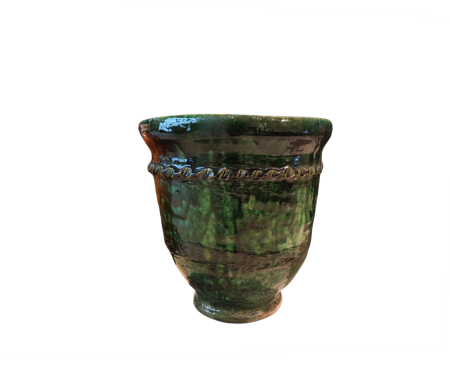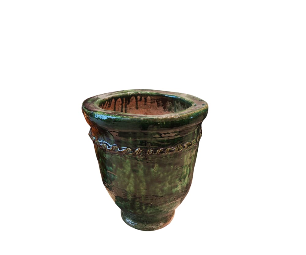 Il vaso verde, con la sua superficie lucida e smaltata, spicca in un angolo del soggiorno o del giardino. Accoglie una pianta rigogliosa oppure decora da solo lo spazio, portando con sé l'eleganza senza tempo dell'artigianato marocchino.